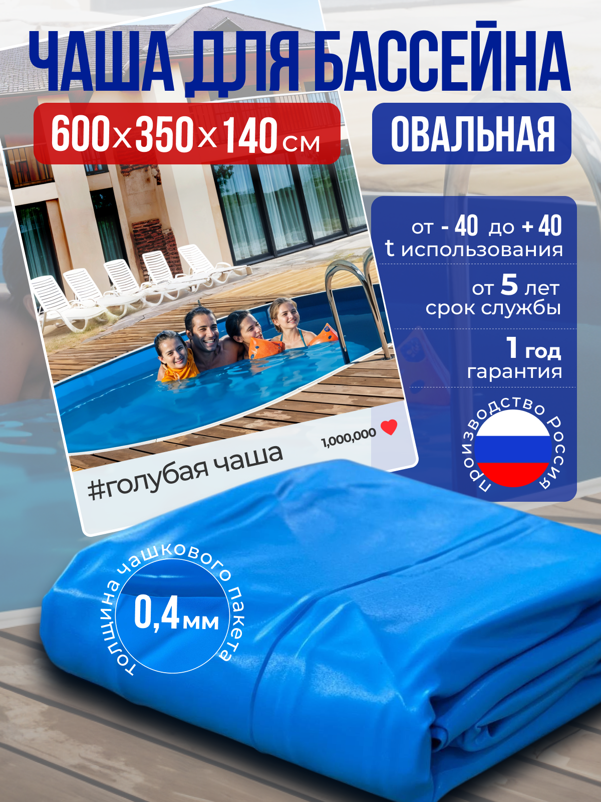 Чаша овальная для бассейна 600 х 350 х 140 см. 0.4/0.4 мм. Голубая