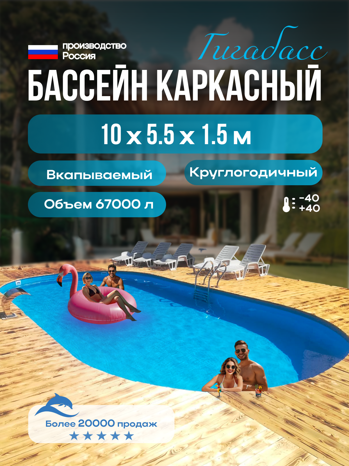 Бассейн сборно-каркасный морозоустойчивый (от -40 до +40) «Гигабасс» овальный от российского производителя (г. Самара).